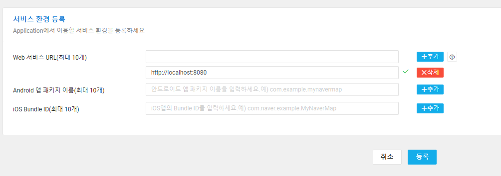 서비스 URL은 일단 임시적으로 http://localhost:8080 으로 지정해 준다. 이렇게 등록해준다.