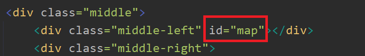 middle-left div에 id를 map 으로 준 뒤, 그 후 아무 부분에서나 맵을 생성해 준다. 이때 인자로 'id'를 주어야 한다.