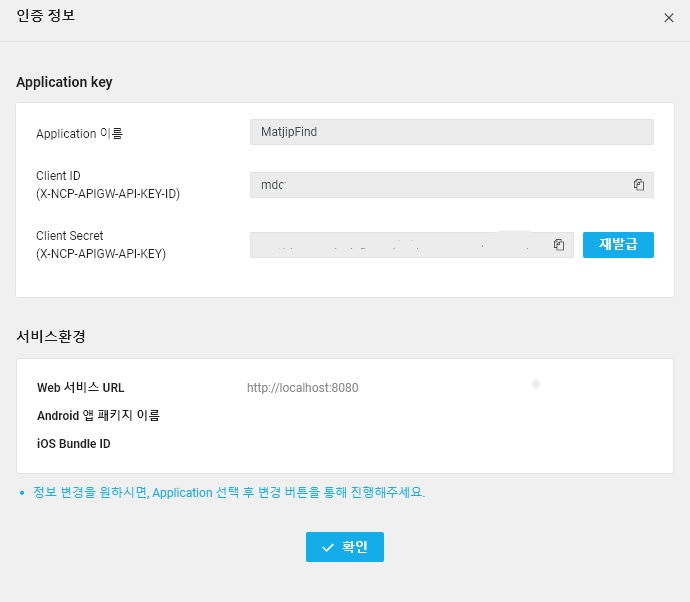 그러면 인증 정보에 이름과 Client ID가 나온다.