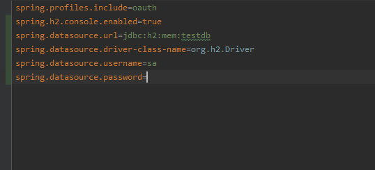 그후 application.properties 에 h2 DB와 oauth 설정파일을 사용하기 위한 설정을 넣어준다.