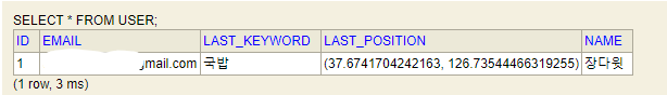 이렇게 구성하고 검색을 시도한 뒤 DB를 살펴보면