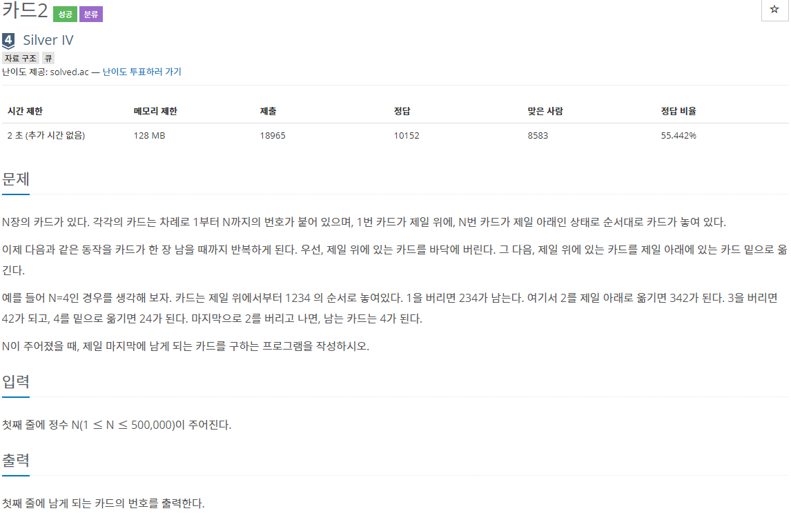 2164번 : 카드2