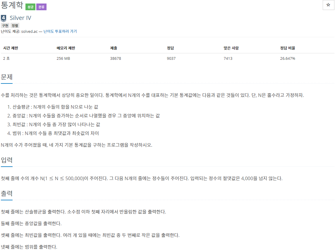 2108번 : 통계학