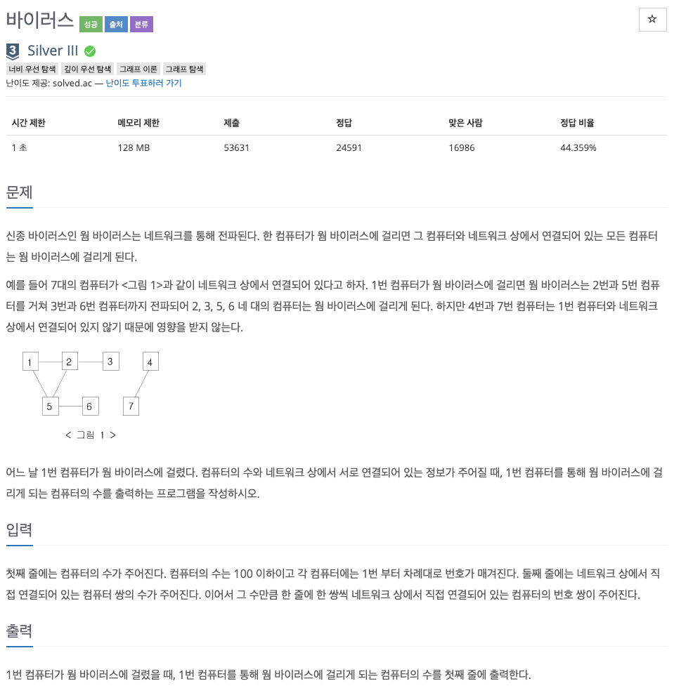 DFS 혹은 BFS의 기초 문제이다. 둘 중 하나의 방법을 통해 1번 컴퓨터와 연결된 컴퓨터를 모두 방문한 후 그 수를 출력해주면 된다.