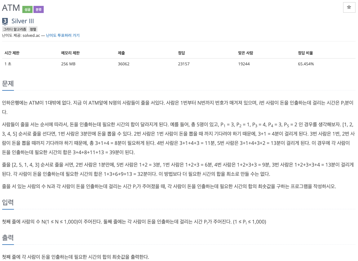 11399번 : ATM
