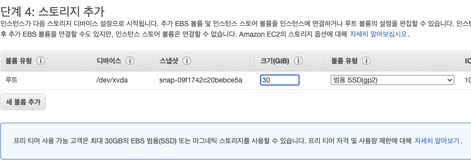 30GB 까지는 무료로 사용가능하니 꽉 채워준다.
