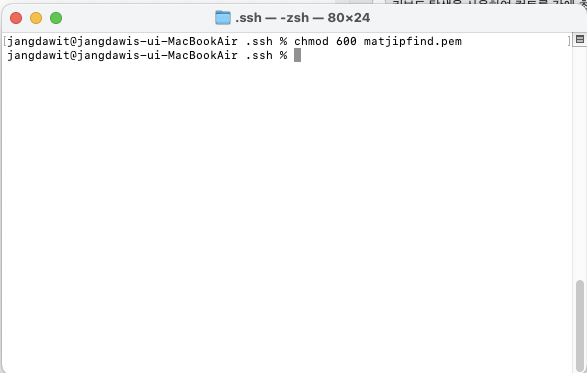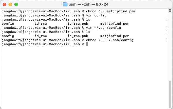 Config파일에 Host와 탄력적 IP 그리고 User 와 펌키의 위치를 쓰고 저장한 뒤 권한을 부여해준다.