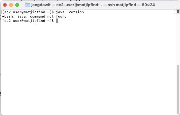 먼저 자바가 설치되어 있는지 확인했는데 없다.