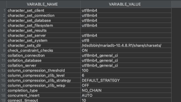 먼저 캐릭터셋을 잘 바꿨는지 확인한다. 몇가지가 latin으로 되어 있어서 utf8로 변경.