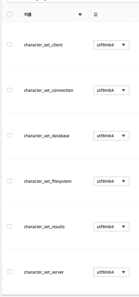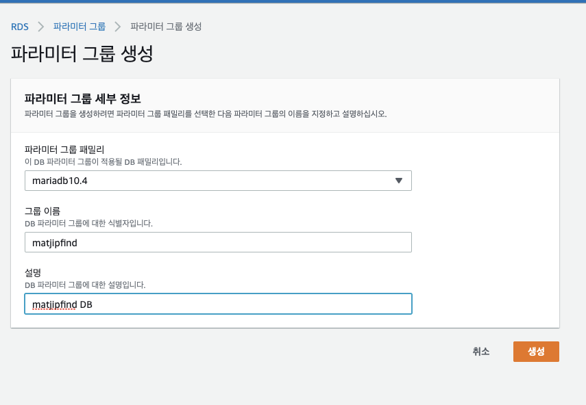DB생성 뒤 파라미터 그룹도 생성해주고,