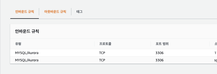 그리고 RDS에 보안 그룹 인바운드 규칙에 내 컴과 EC2 그룹 ID를 복붙한다.