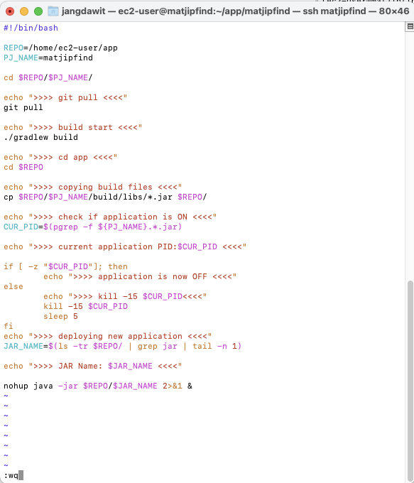 이렇게 빌드는 다행스럽게도 성공적으로 되었다. 이제 nohup파일을 확인해본다.