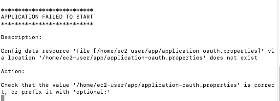 gitignore 때문에 git에 올라가지 않았던 application-oauth.properties때문에 오류가 난 듯 하다 이를 복사해서 해당 경로에 만들어준다.