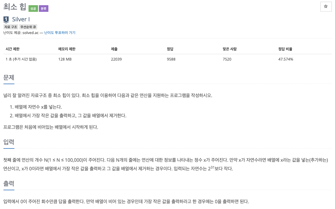 1927번 : 최소 힙